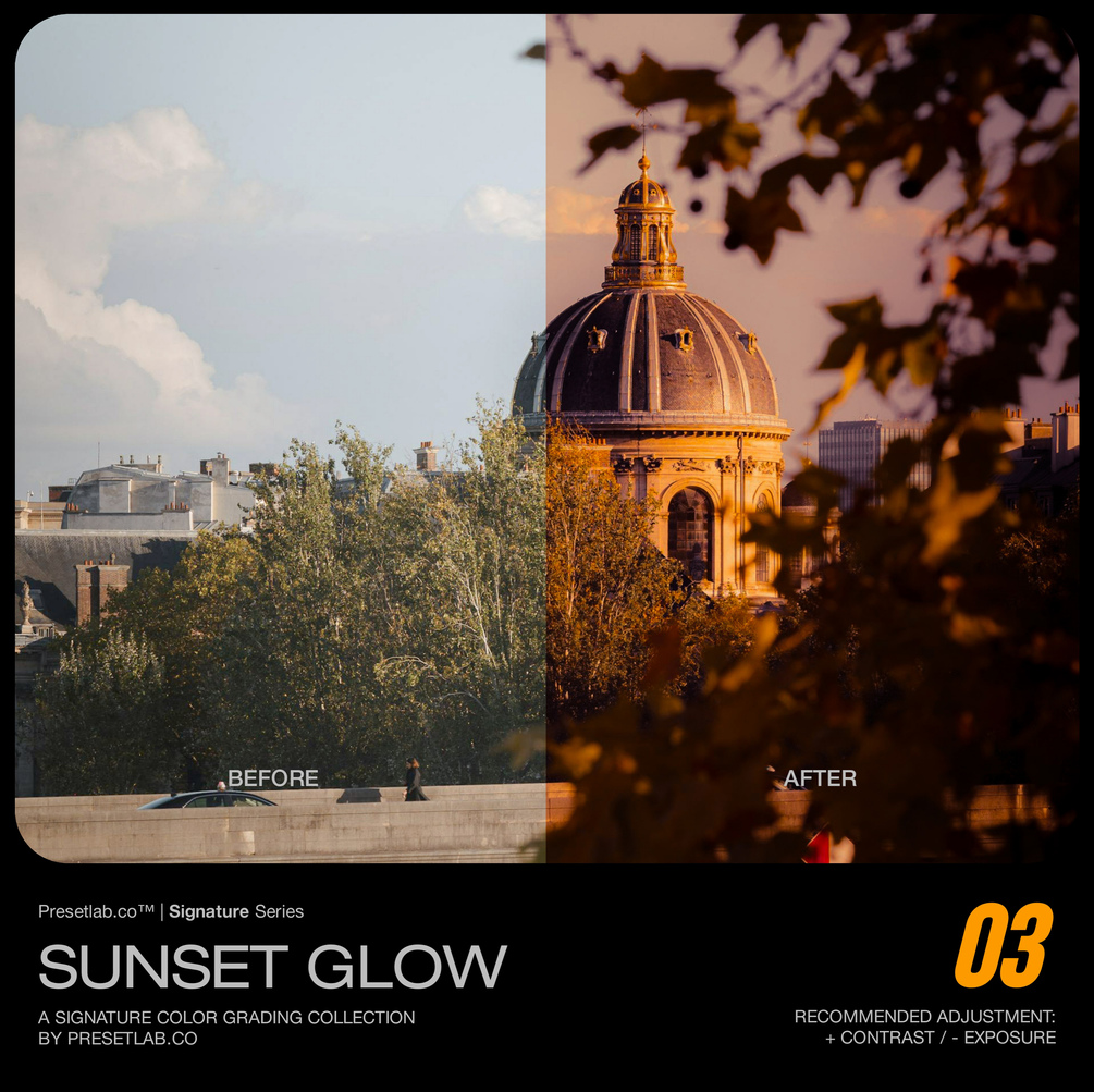 Want to bring warm amber tones and a dramatic glow to every shot? Sunset Glow is an exclusive preset specially designed for those who want to showcase golden hues, romantic vibes, and a rich, dramatic atmosphere in their photos — perfect for lifestyle portraits, sunset moments, and Instagram feeds with a touch of warm, elegant nostalgia.