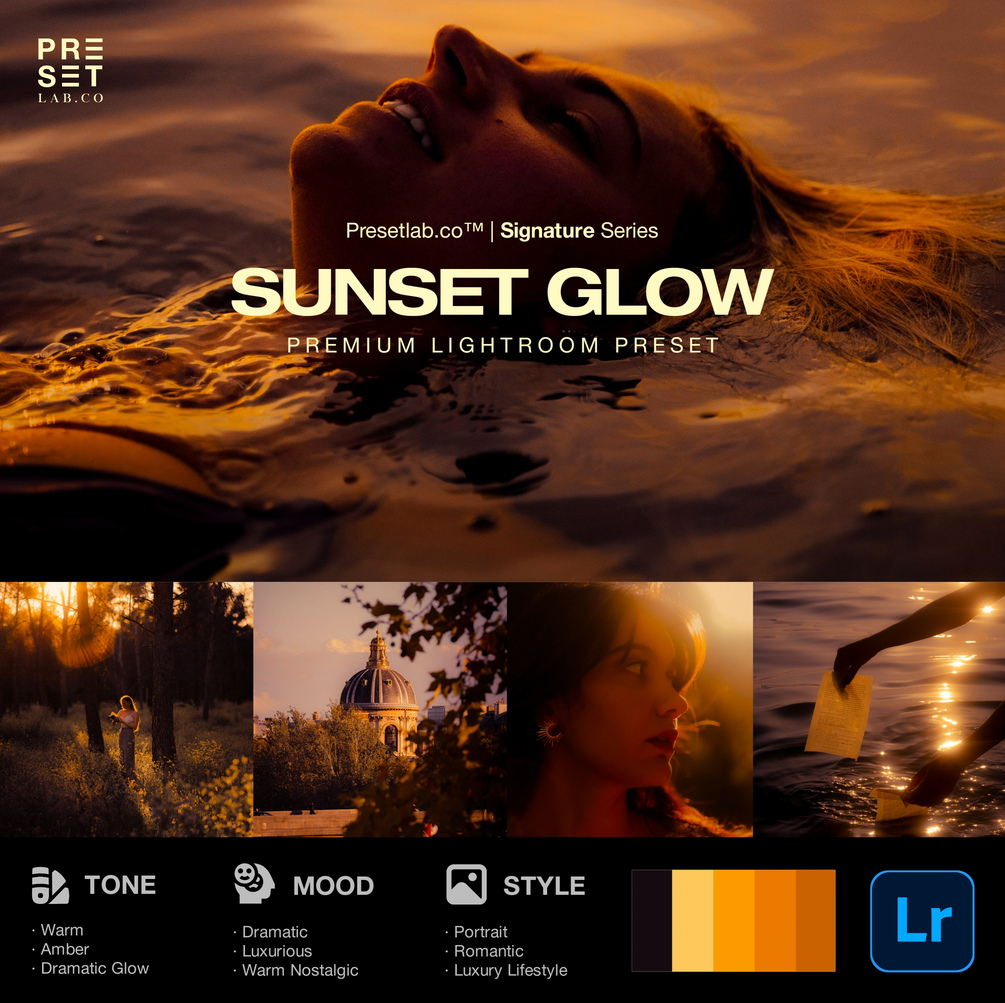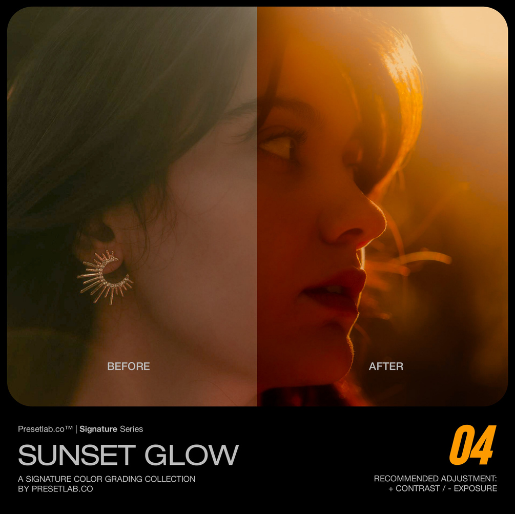 SUNSET GLOW delivers 8 premium presets that enhance photos with golden tones, romantic warmth, and cinematic glow — perfect for portraits, sunsets, and nostalgic feeds. Fully compatible, easy to install, and lifetime access included.